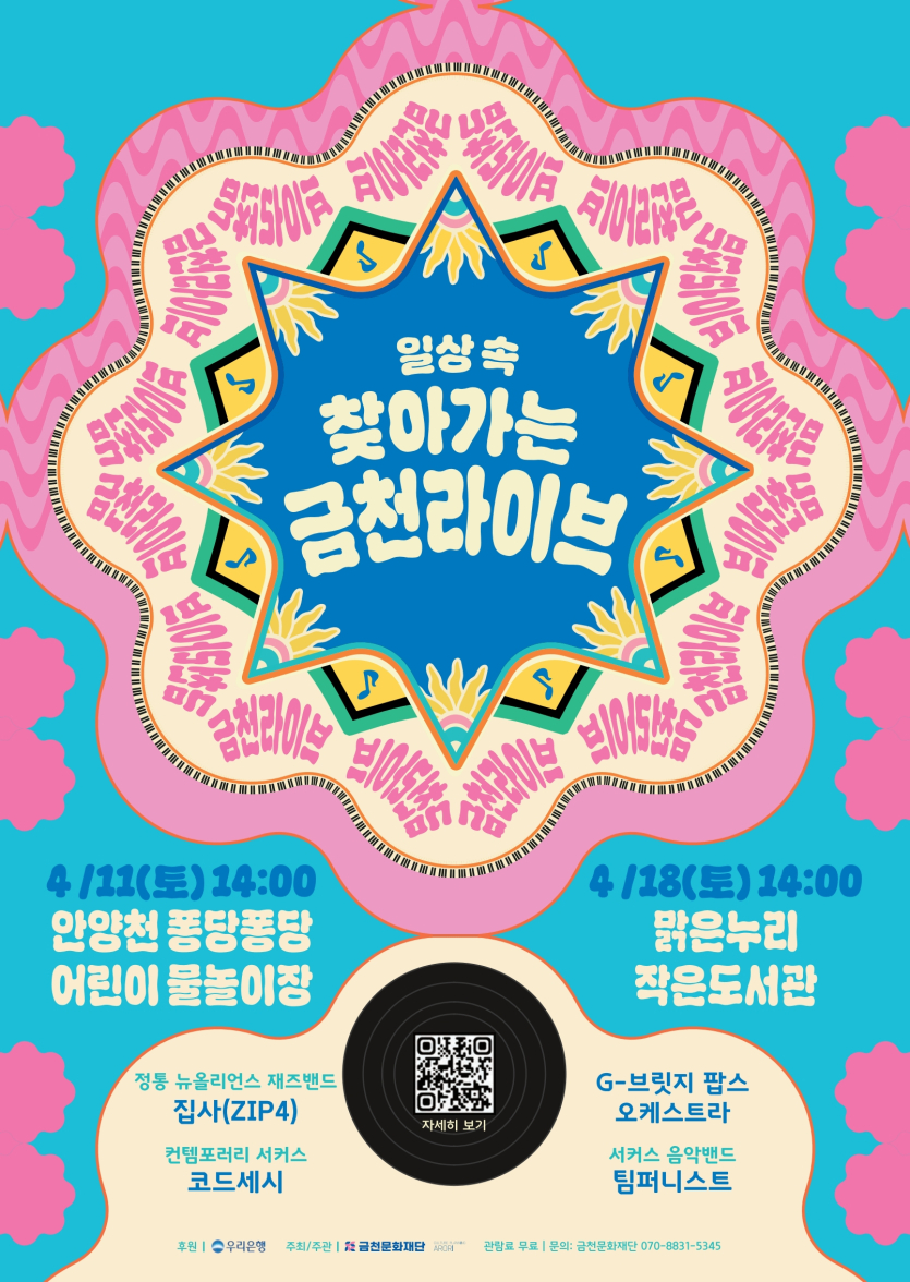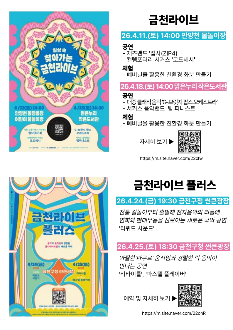 - 금천라이브: 금천 곳곳의 야외공간에서 펼쳐지는 특별한 공연