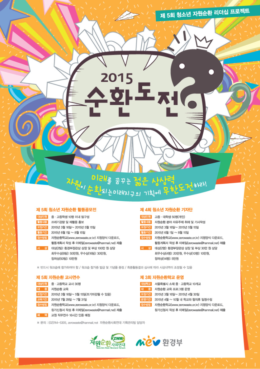[순환~도전!!]『제5회 청소년 자원순환 리더십 프로젝트-순환도전』참가자 모집안내 (5월 15일까지 접수)