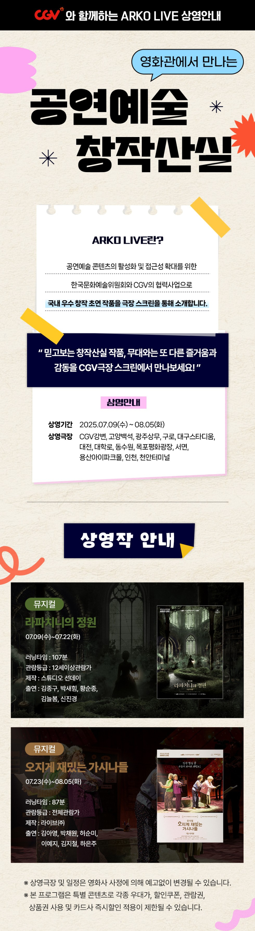 [서울 외] 공연예술창작산실 올해의신작 공연실황영상 CGV 아르코라이브 개봉 안내 및 홍보