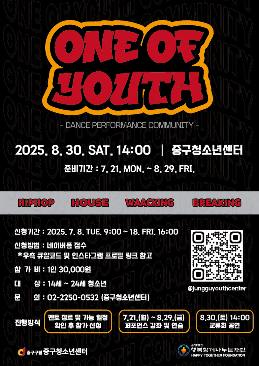 [중구] [중구청소년센터]문화예술축제 '원오브유스' 참가자 모집