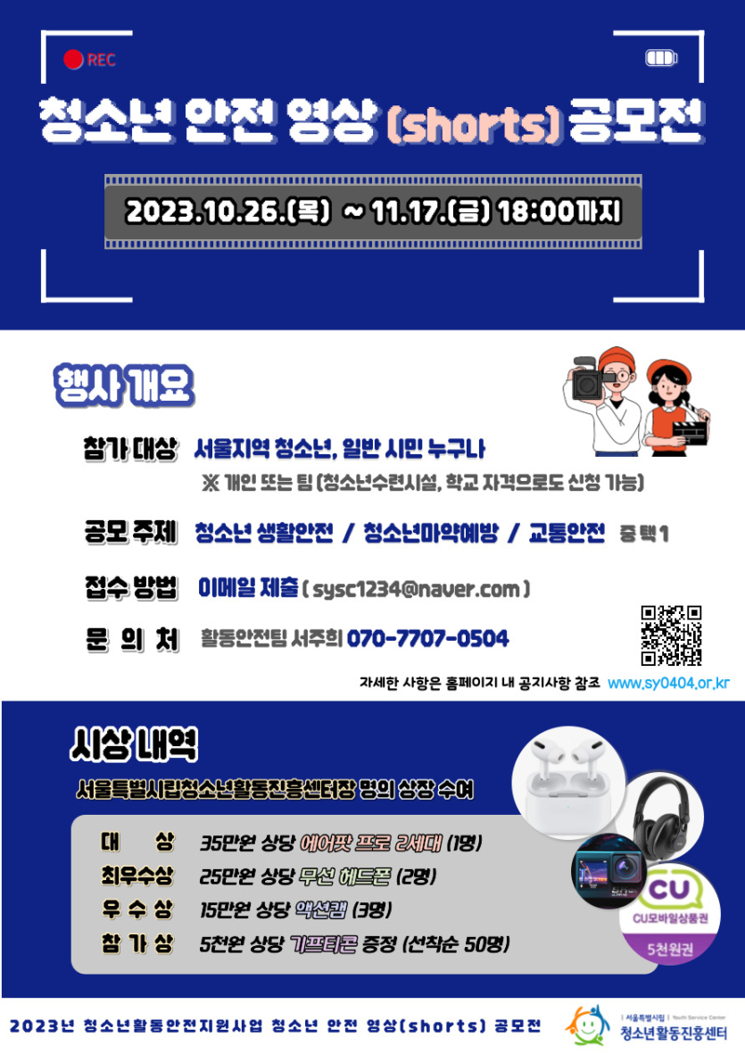 2023년 청소년 안전 영상(shorts) 공모전을 진행하오니