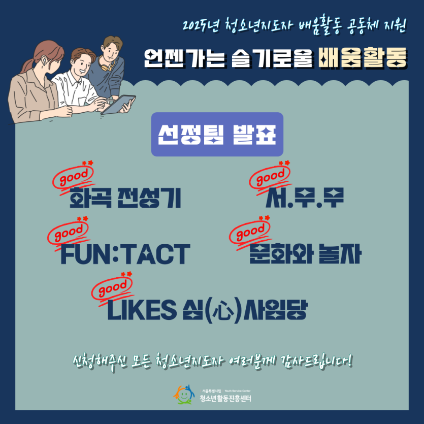 [공지] 2025년 청소년지도자 배움활동 공동체 지원 선정팀 발표!