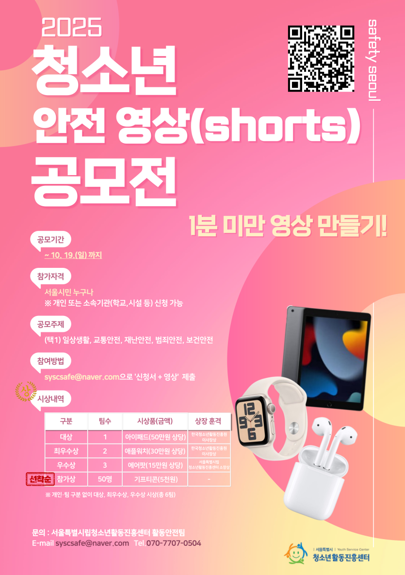 [공지] 2025년 제3회 청소년 안전 영상(shorts) 공모전 안내