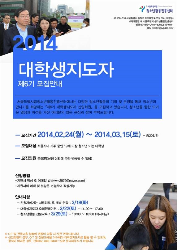 청소년활동을 이끌어 갈 대학생을 찾습니다!