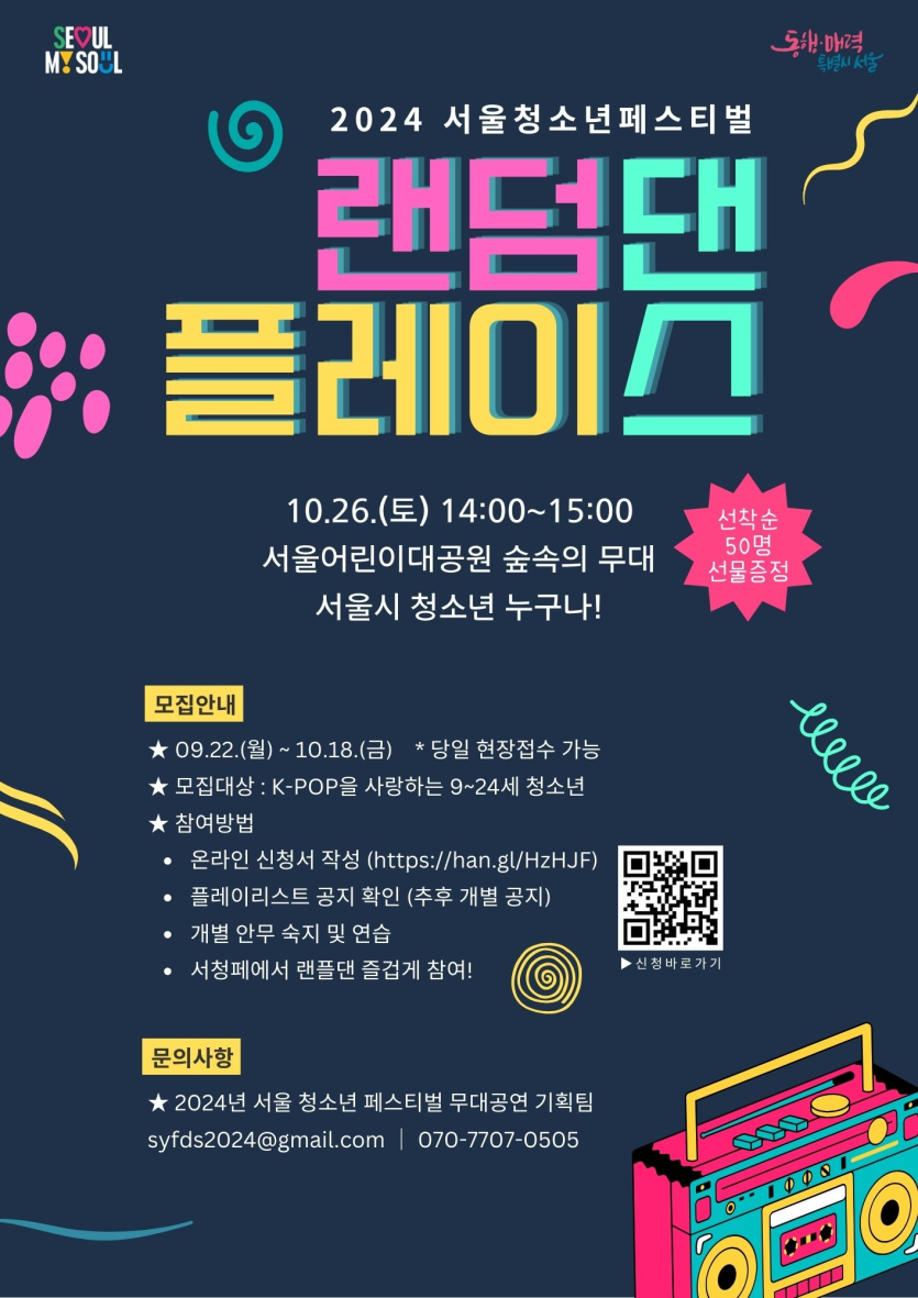 [모집] 2024 서울 청소년 페스티벌 랜덤 플레이 댄스 사전 신청 안내