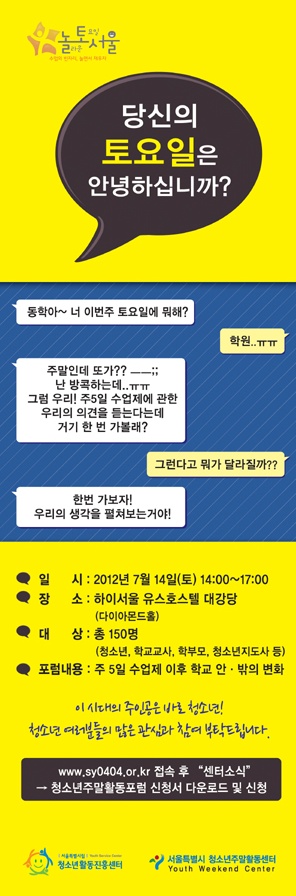 "주 5일수업제 관련 청소년 주말활동 포럼" 안내