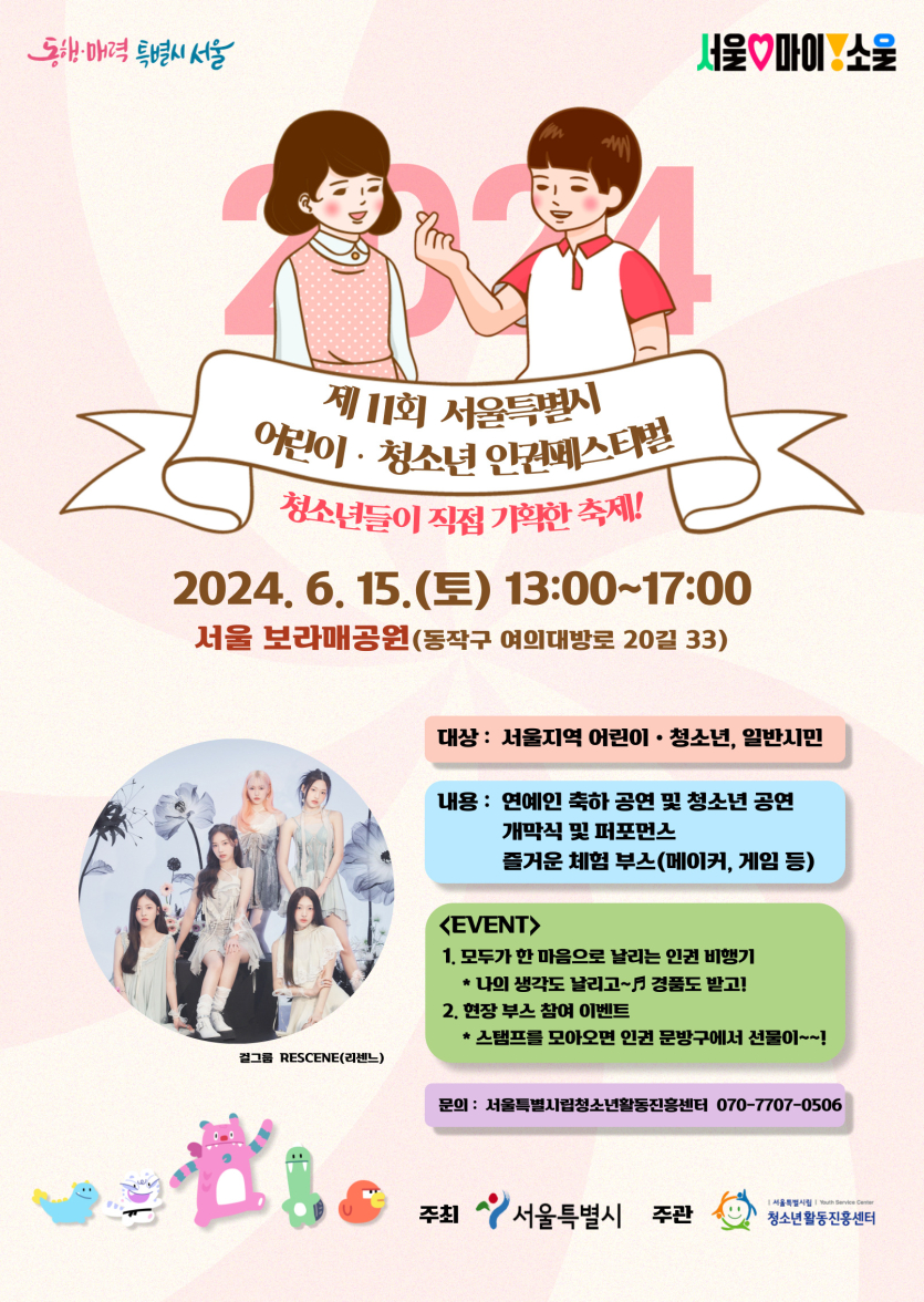 [행사] 2024년 서울특별시 어린이ㆍ청소년 인권페스티벌 행사 안내 !!