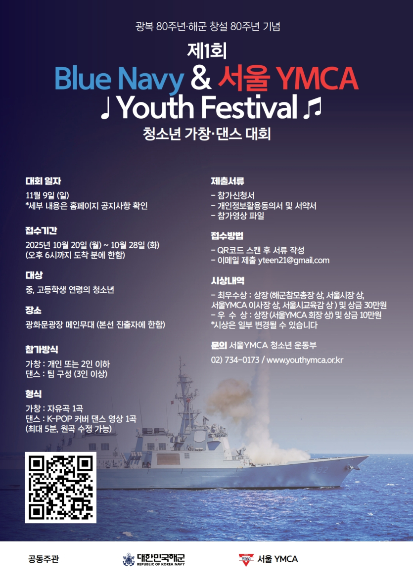 [중랑구] [망우청소년센터] 광복 80주년 및 해군 80주년 기념 청소년 가창 댄스대회 제1회 Blue Navy & 서울 YMCA Youth Festival 안내