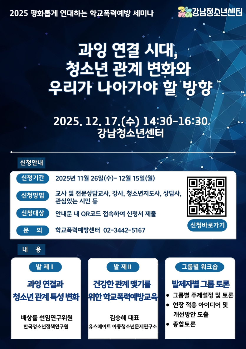 [강남구] [강남청소년센터] 2025 평화롭게 연대하는 학교폭력예방 세미나 안내