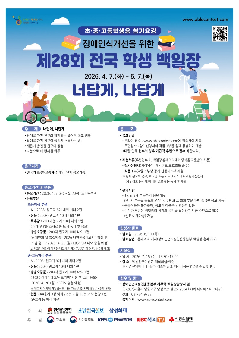 [영등포구] [장애인먼저실천운동본부]장애인식개선을 위한 제28회 전국 학생 백일장 안내