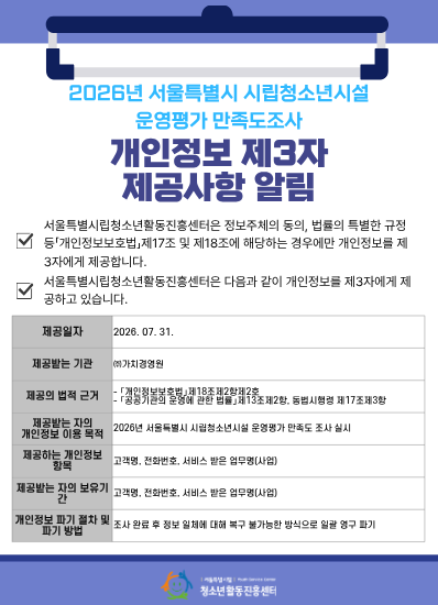 - 채용정보서울특별시립청소년활동진흥센터 서류합격자 공고(활동안전팀)2026.03.27