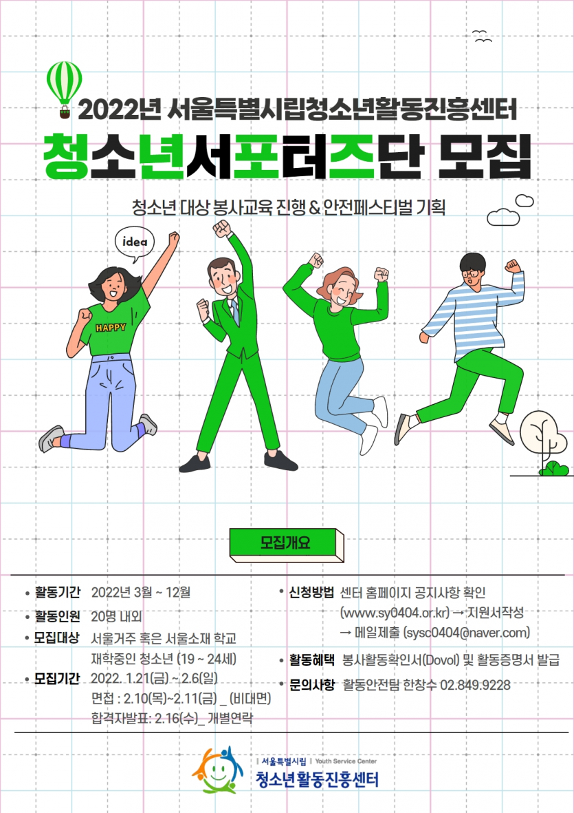 붙임1._2022년 서울특별시립청소년활동진흥센터 청소년 서포터즈단 공고문.hwp (131.5K) 2회 다운로드 | DATE : 2022-01-20 11:05:56