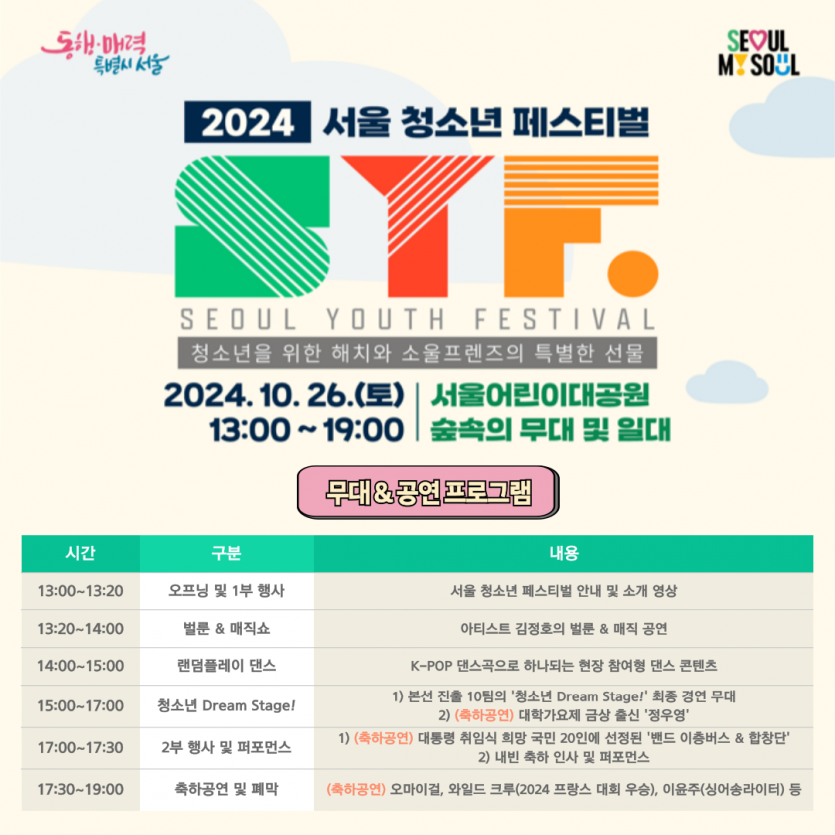 [행사] 2024년 서울 청소년 페스티벌 '무대&공연' 타임 테이블 안내