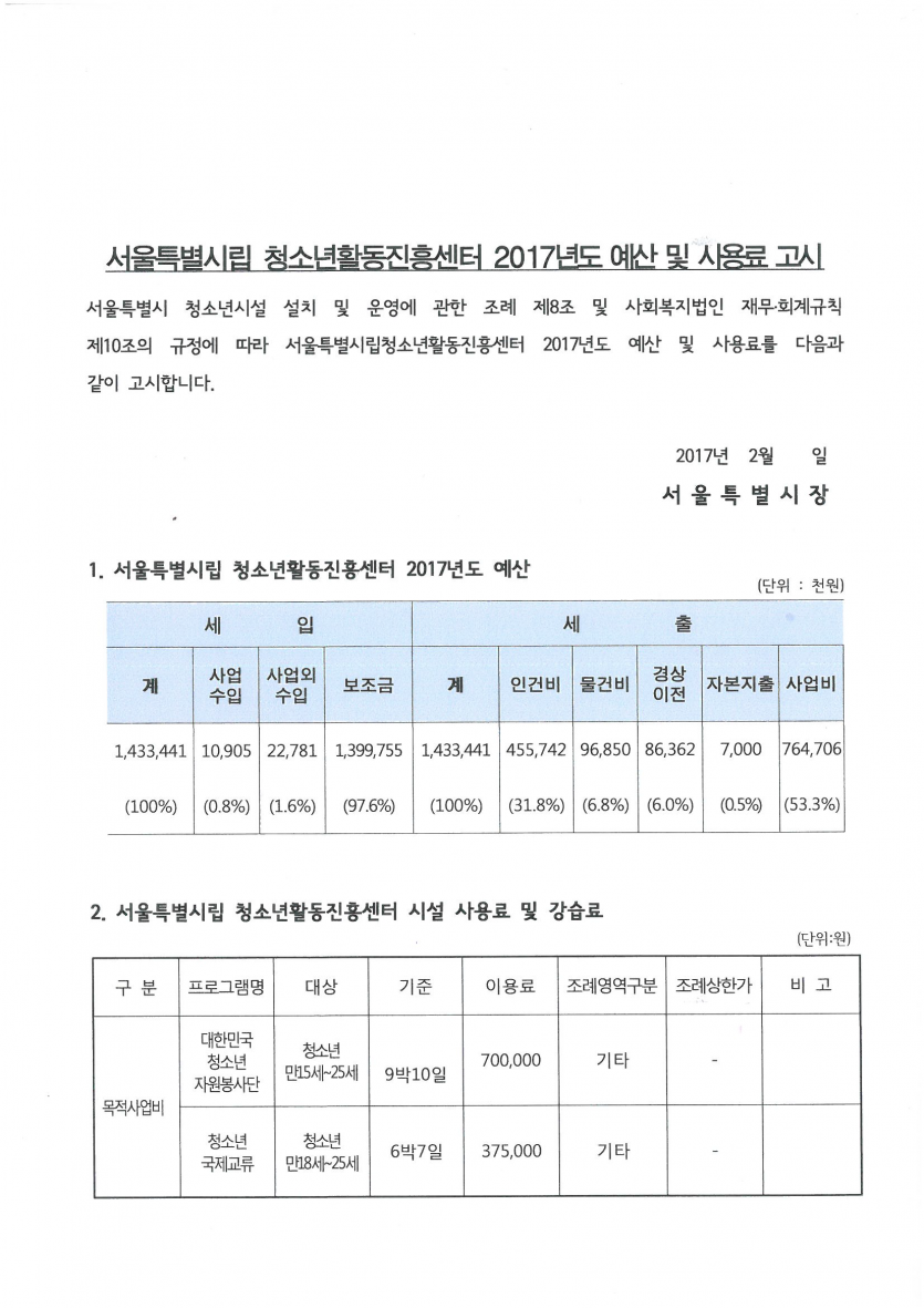 목록 서울시립청소년활동진흥센터 2017년도 예산 및 사용료 고시 페이지 정보 작성자 관리자 댓글 0건 조회 3,744회 작성일 2017-02-22 본문 추천0 이전글2017년도 신규 대학생지도자 면접일정 안내 17.02.23 다음글2017 청소년특성화동아리 설명회 일정 안내 17.02.22 댓글 0 댓글목록 등록된 댓글이 없습니다. 목록