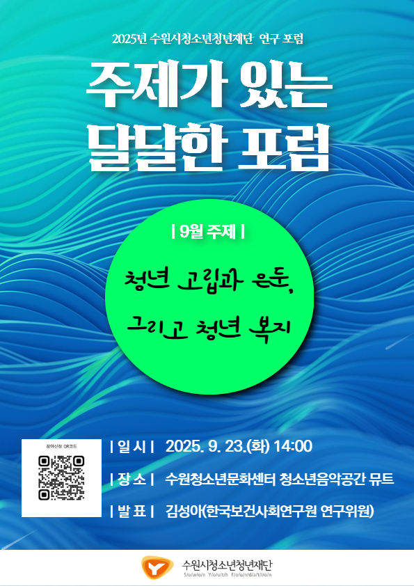 [서울 외] [수원시청소년청년재단] 9월〈주제가 있는 달달한 포럼〉참석 안내
