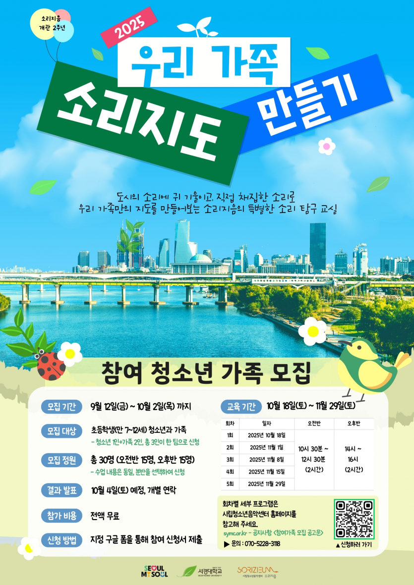 - 다음글[2025 서울청소년페스티벌] 청소년의 에너지가 서울을 물들인다! 2025 서울청소년페스티벌 공식 안내 25.09.15