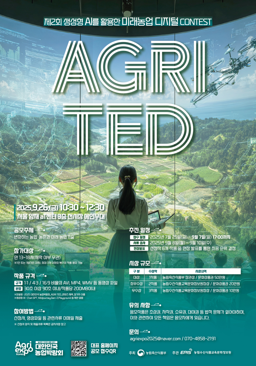 2025 대한민국 농업박람회 AGRI TED 공모전 안내문_최종.hwpx (141.2K) 1회 다운로드 | DATE : 2025-08-12 17:39:00